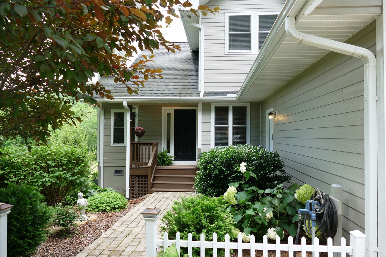 Franklin NC's most amazing property.. 3 bedroom/3Baths..with an OFFICE.. 700' or so of Cartoogechaye Creek, swimming, tubing, fishing, relaxing..a huge long range view, completely level property, RV friendly, tons of parking, a double car attached garage AND a separate RV or Storage, or Workshop Garage with power. This home is wonderfully built, has late model stainless appliances, hardwood floors, stacked rock fireplace (gas log), crown molding, granite counters, raised vanities, ceramic baths/showers/claw tub..convenient pocket doors for space saving, gorgeous soft colors on the interior, custom lighting, a DRY STAND UP crawl space, spacious decks, fabulous landscaping.. upscale fixtures.. paved to the door.. and this home comes COMPLETELY FURNISHED & has a CLAW TUB in the master!! There are 2 wells, plenty of flat space for gardening.. park your monster RV.. this property can take it!!