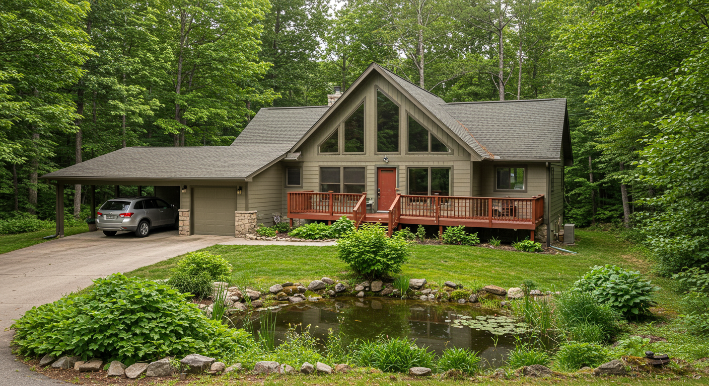 This is one of Franklin NC's best and most attractive listing! Nestled in mountains in the popular Cartoogechaye Township, this home has it all. Great winter view, view of pond, quiet, and attractive neighborhood with gravel and paved roads. 4 wheel drive is NOT necessary! This home has 2 great levels with central H/A, propane backup heat, hardwood, ceramic tile and carpet flooring. There is an attached carport with entry into the kitchen, and also an oversize 1 car attached garage below. There is even a ramped entrance in the carport. The kitchen is fully appointed, spacious and has a convenient pass through opening to the dining room. The living room and dining room have a tremendous vaulted ceiling with a stacked rock wood burning fireplace, and "B-board" ceiling, natural wood. It looks amazing. 2 full baths, 2 bedrooms on the main level along with a jumbo size laundry room and lots of cool hidden storage spaces! The lower level has a good size office with lower terrace access, 1 full bath with step in shower, 1 large bedroom, and the garage. The grounds of this home are professionally landscaped and just beautiful. There are multiple decks and terraces for any and all occasions.