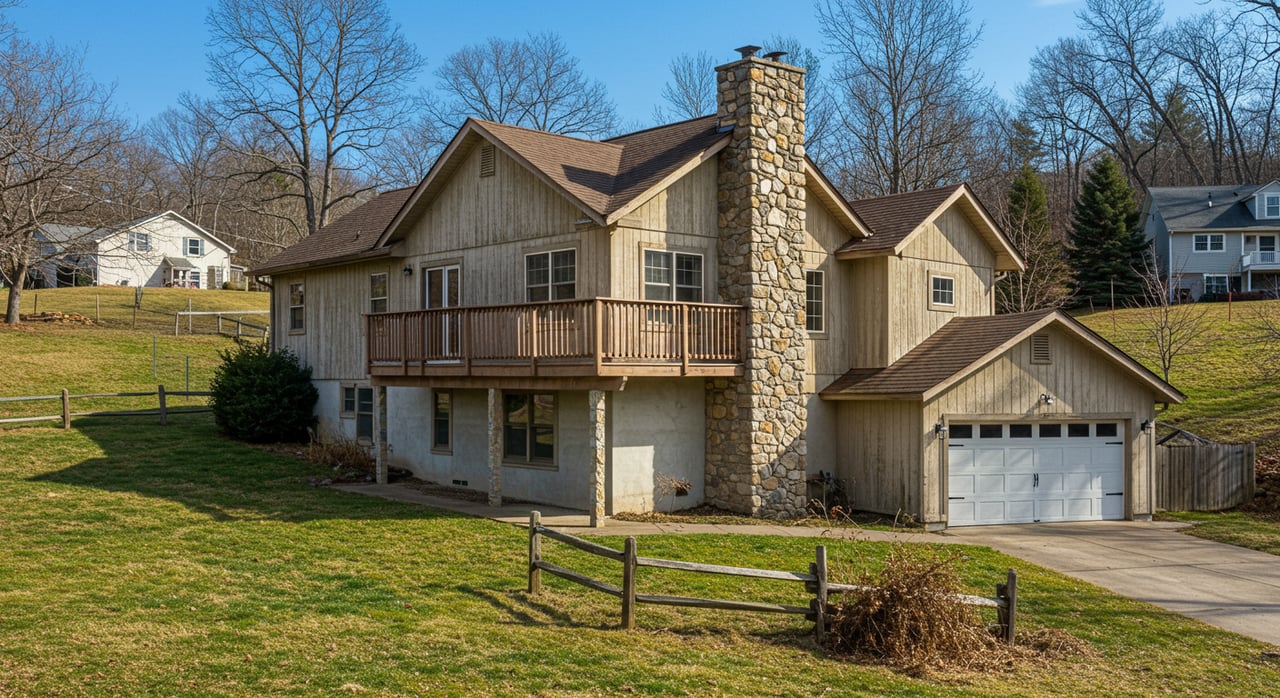 Remarkable View from this dynamic Mill Creek home in Franklin NC. You will love being in this home overlooking Mill Creek. It includes fairways, greens and even a stream! This home is paved to the door and conveniently located near the entrance to Mill Creek. It has luxurious wood floors, beamed and vaulted ceilings, and lots of dual pane thermal windows. It also contains two stunning view decks, a full size 2 car garage, and a large Media/ Family Bonus room downstairs that has inside and outside access and a lovely terrace with such a great view!