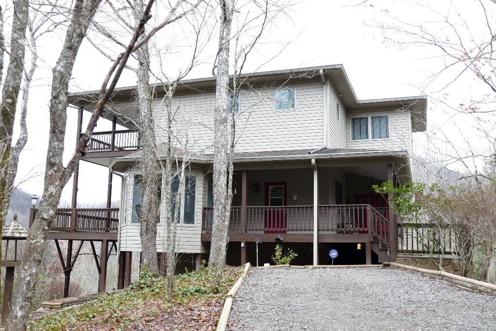 You are looking at one of Franklin NC's most elegant listings. This 3 level home has an interior elevator, a whole house generator, 3 Bedrooms 31/2 baths, over 2000 sq.ft. of gorgeous COVERED decking with a world class view! The master suite is second to none, 3 walk-in closets, a fireplace, custom lighting and a master bath fit for a KING and Queen! The home has a First Class Kitchen graced with 3 pantries and a glass enclosed breakfast area. You will be amazed at the gorgeous custom wood flooring and cabinetry in this home! 1.66 acres, private and a view from the balcony of Heaven! Down below is an additional bedroom(#4) , a lovely kitchen and an oversized 2 car garage with easy access to the elevator for your convenience. This is a home of unparalleled excellence in design and class.