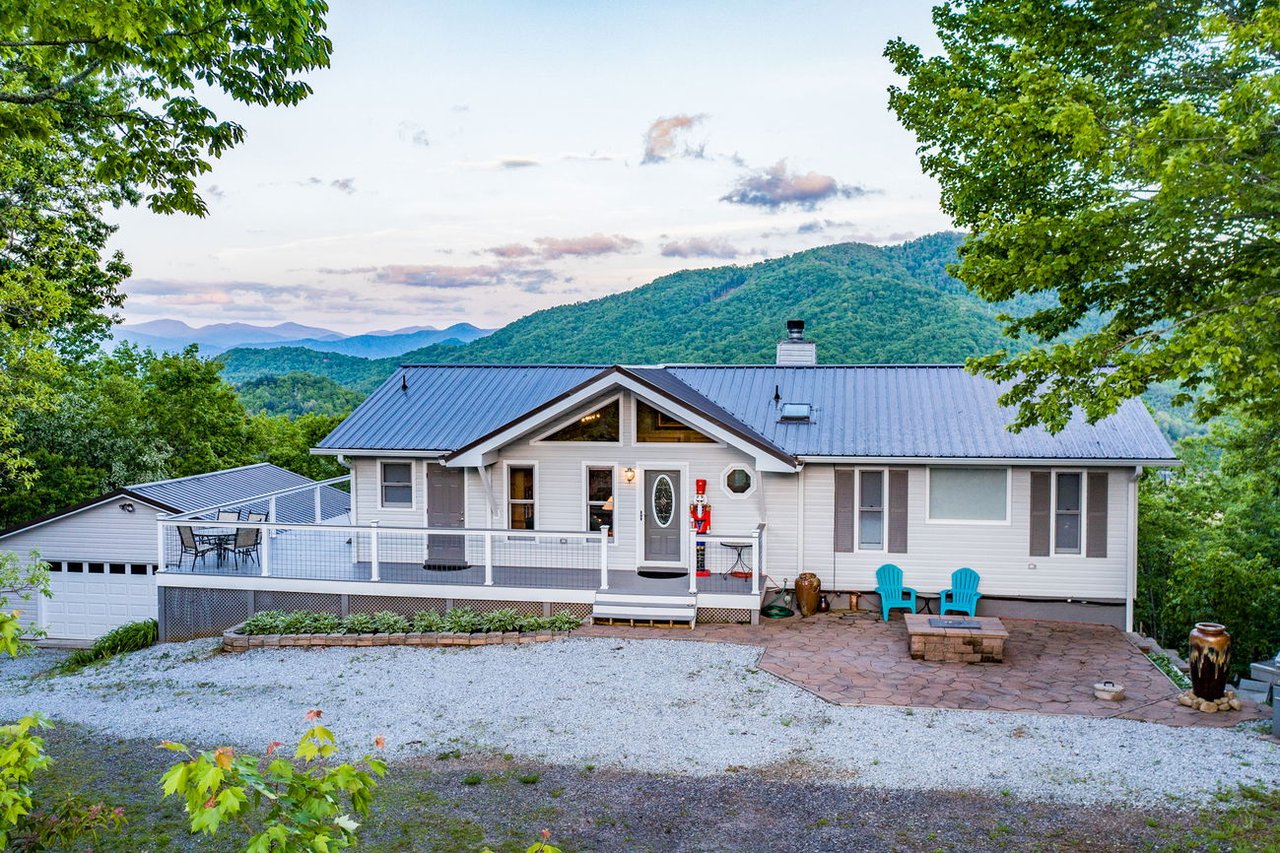 SEE YOU AT THE TOP! Absolutely no better VIEW in Franklin NC than this one! The home is spectacularly designed and appointed with full wrap around decks (no maintenance composite boards), terraces, new roof 2013 (metal), hardwood floors, whole-house fan, dual pane windows, spacious updated kitchen with view windows & breakfast bar and nook, fireplace, vaulted ceilings, pocket doors, 2800 ft elevation, new garage, 17K whole house generator. Huge bonus room lower level with full kitchen family room, 2 baths, and 1 large bedroom Perfect IN-LAW Quarters...inside/outside access, and end-of-the-road privacy. Appliances, window treatments, built in book cases, composite decks and deck screens all under 5 years old per owner. Whole house generator runs the entire home AUTO/ON/OFF serviced yearly!