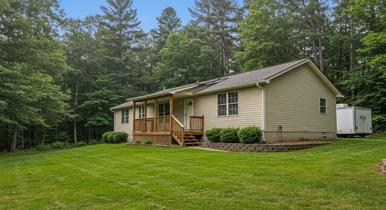 Close to town 3/2 SINGLE LEVEL LIVING BEAUTY. This home is in great condition, sits on level land with a nice creek! Easy access, paved to the door, attached 2 car garage with office, hardwood flooring, Central AC/Heat, stacked rock fireplace(gas logs), tile baths and a nice kitchen. Perfect home for anyone wanting to live in close to town. Great yard for kids, and grandchildren... Sit by the creek and enjoy your life here in this excellent family home!
