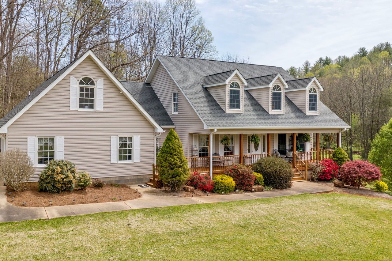 Phenomenal Franklin NC Mountain Home for Sale. This home sits upon 5 (+/-) acres of level pretty land with a rushing creek on the border! Fully paved drive, this home has a 2 car attached garage and a 3 bay detached garage/workshop! 3 levels of luxury here with almost 1100 sq. ft. of unfinished but plumbed basement. The home has QUAD HVAC Systems, 2 for the main, and 2 for the upper level. This home has new luxury plank flooring and gorgeous VIEW decks, it is very spacious and well appointed with a great floor plan. Soaring vaulted ceiling in the living room, formal dining room with kitchen access, a huge and intelligent kitchen, well equipped, and even contains a monster walk-in pantry. All the bedrooms are large, with 2 on the main, and 2 on the upper level. The master has a jetted tub, tiled shower, and a walk-in closet second to none! Upstairs has a family room, 2 bedrooms, and 2 bonus rooms either of which are large enough to use for any hobby, or home gym! Truly an amazing residence only 5 minutes from town with easy access all year round!