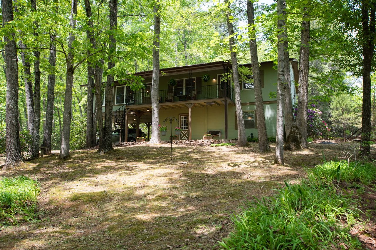 Sweet Franklin NC mountain cabin just moments from the center of town. This 2 bedroom, 2 bath home is tucked away in a quiet setting surrounded by mature trees, and perennials. It has a nice winter view and an easy access LEVEL drive and yard! Plenty of parking for you and your guests. The home has 2 spacious decks, 1 upper & 1 lower. There is a lower level that has a good size family room, a mini-kitchen, full bath, laundry facility and a large workshop. This lower level is accessible from both inside and outside of the home. The main level has a stunning custom Sun Room with windows all around, heated. The main level has 2 bedrooms and 1 bath, a real cute kitchen with two breakfast bars and electric appliances. Lower level heat is electric, upper level is a Mini-Split and baseboard.