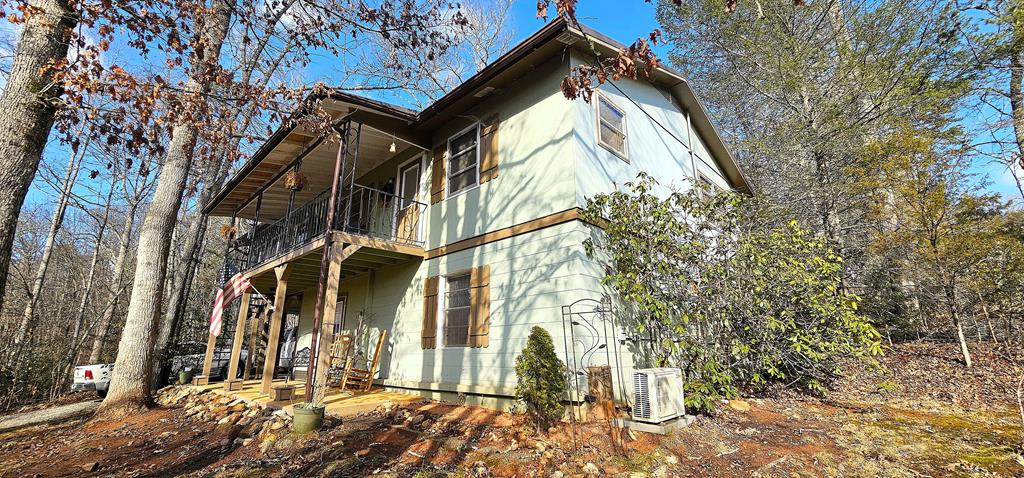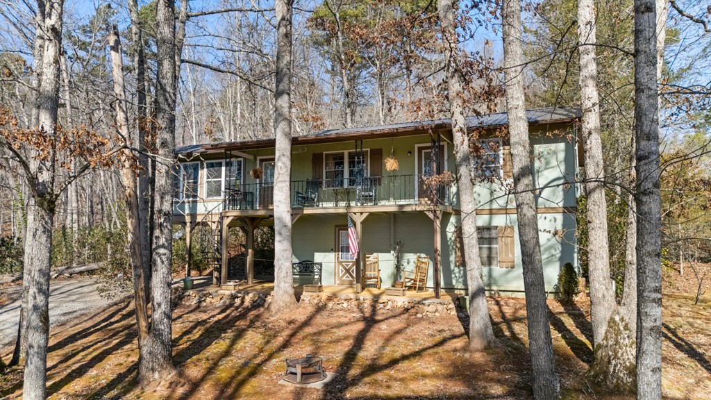 Sweet Franklin NC mountain cabin just moments from the center of town. This 2 bedroom, 2 bath home is tucked away in a quiet setting surrounded by mature trees, and perennials. It has a nice winter view and an easy access LEVEL drive and yard! Plenty of parking for you and your guests. The home has 2 spacious decks, 1 upper & 1 lower. There is a lower level that has a good size family room, a mini-kitchen, full bath, laundry facility and a large workshop. This lower level is accessible from both inside and outside of the home. The main level has a stunning custom Sun Room with windows all around, heated. The main level has 2 bedrooms and 1 bath, a real cute kitchen with a breakfast bar and electric appliances. Lower level heat is electric, upper level is a Mini-Split and baseboard.new metal roof 2025!
