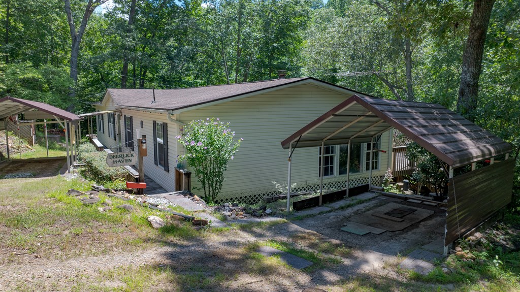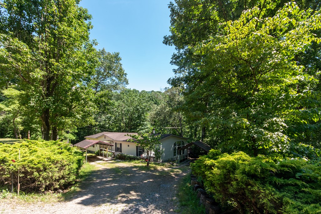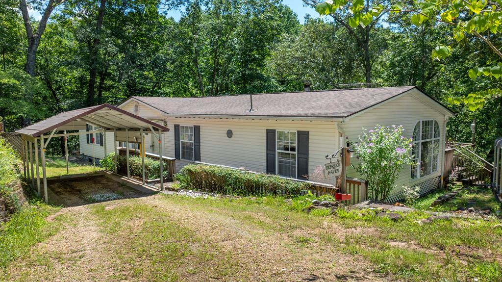 Nestled in the highly desirable Clarks Chapel area, this well-maintained 3-bed, 2-bath doublewide offers a peaceful setting on 1.22 +/- acres of gently rolling land. Located just a short drive from town, the property has easy access with paved roads nearly the entire way--only the last 0.1 +/- mile stretch is gravel. Inside, the home features a thoughtful split-bedroom floor plan, providing privacy & functionality with all main-level living. The spacious primary suite includes an en-suite bath & ample storage, creating a comfortable retreat. The open kitchen offers abundant cabinetry & flows easily into the adjacent laundry area for everyday convenience. Enjoy the flexibility of two separate living areas--perfect for entertaining! The cozy family room features a charming wood-burning fireplace & a floor-to-ceiling window that fills the space with natural light. Two additional bedrooms share a full hall bath, ideal for family or guests. Step outside to relax on the large back deck overlooking the expansive backyard--an ideal space for gardening, pets, outdoor gatherings, & more! This property combines comfort, space, & location, making it a wonderful place to call home!