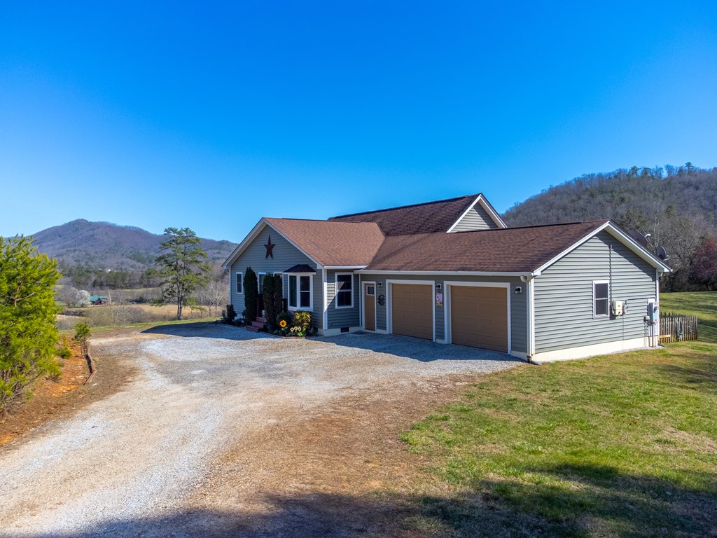 Welcome to custom country living in Cowee! This beautiful 1952 +/- sq ft home features 3BR & 2BA of main level living on 4.09 acres of open and usable land! Enjoy breathtaking sunrise mountain & river views that are sure to melt your heart! Interior features include a separate living room & a large, open kitchen/dining room combo space both with views! Loads of windows to let in natural light, a large island & custom cabinetry, gas range, wall oven, walk-in pantry, vaulted T&G ceilings, plus large & functional laundry room and a split bedroom plan. The large primary suite has access to the deck, large WIC and a clawfoot tub in the bath. The 2 additional bedrooms & guest bath are good sized. There are hardwood floors throughout the living areas, ceramic tile baths and carpet in the bedrooms. Plus there's a cool loft area above the kitchen. Exterior features include composite decking, solar panels, oversized 2 car attached garage, 10x12 storage shed and 18x30 carport. There is good parking and easy access and let's not forget the amazing VIEWS! Don't worry about yard work - a local farmer can hay the field for free! Very minimal restrictions. Don't miss this amazing home & property!