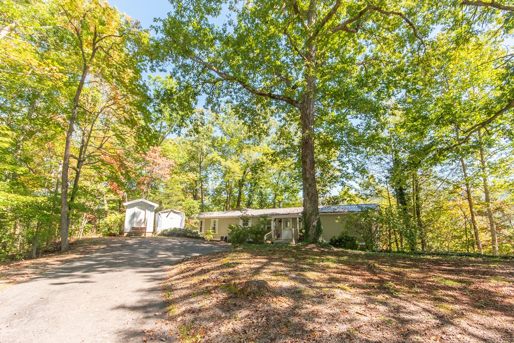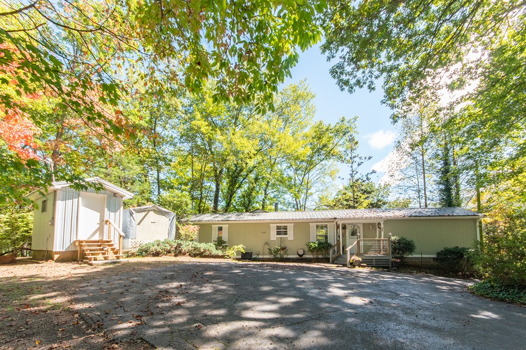 Your mountain home with big winter VIEWS awaits on Summer Circle! Located in a gated 55+ community, this 3/2 home provides a feeling of complete privacy at the top of the subdivision. The bonus den addition is like a sunroom in treehouse, with abundant glass doors and windows, huge winter views and a cozy stone woodburning fireplace. A split bedroom floorplan boasts a primary with ensuite bath on one side of the home and two small bedrooms with a nice guest bathroom on the other. The main living area is open and cheerful... but you're sure to spent most of your time in the sun den or one of the decks! New flooring throughout most of the home and a NEW metal roof in 2025! Two basement storage areas. This home is a 1988 Summer Brand 14' X 70' Singlewide plus the sun den addition on a rented lot. $595/ month covers your lot rent, community water, septic system, road maintenance and gate. Quick access to both Franklin and Highlands NC. Welcome to the easy life in Mountain View!