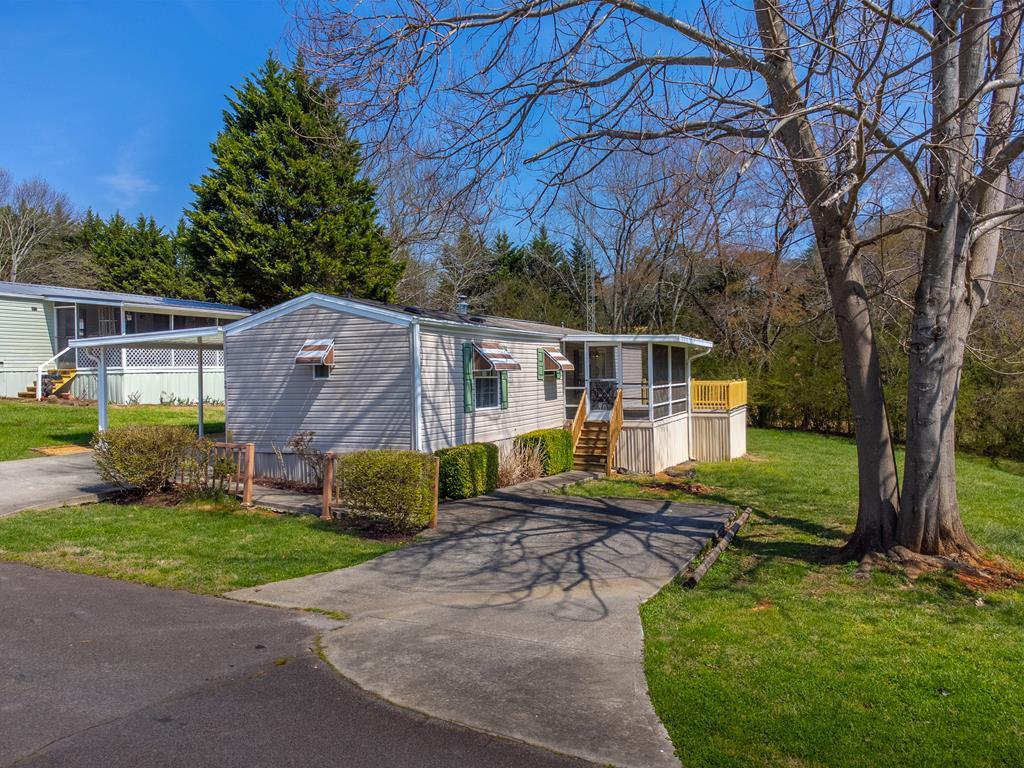 Welcome home to Rolling Acres! A very desirable and active retirement community where you own the land in the beautiful mountains of Franklin, NC! Sitting on an oversized lot, next door to the rec center, this 2 BR, 2 BA Single Wide is well-maintained and ready for you to make it your getaway or permanent home! Interior features include open living/dining area, cozy kitchen, vaulted ceiling, gas fireplace, split bedroom plan, nice laundry room & crown molding. The bedrooms are a good size with walk-in closets & there are carpeted and laminate floors throughout. A good sized screened porch to relax and take in the fresh air plus a large open deck. An attached carport for unloading groceries directly to the kitchen, and a powered storage shed! Access is super easy and the location is clos...