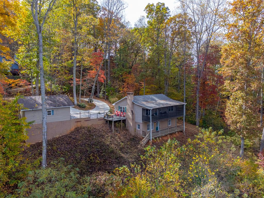 Mountain Views, Privacy & Flexible Living! This spacious 2BR/3BA mountain home on 1.66 acres with year-round views and a private setting is sure to please! The main floor features a comfortable, open living plan w/access to the fully screened deck, ideal for relaxed living and entertaining. The large eat-in kitchen flows into a welcoming living area with a stacked stone, wood-burning fireplace, vaulted and beamed ceiling, and a cozy office nook complete with built-in desk and storage. Both bedrooms are generously sized and the primary bedroom includes an en suite bath for added comfort. The lower level is open and versatile, perfect for additional sleeping quarters, a game room, family room, or a combination of all three. A full bath, large laundry/mechanical room, and access to the lower deck complete the space. Additional features include a detached 2-car garage, an outdoor fireplace area, HVAC, paved drive, and easy gravel access. With its private & peaceful setting with beautiful mountain views, this property offers both comfort and flexibility and is ideal as a full-time residence or mountain retreat.